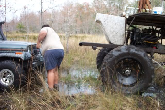 cj5 buggy got a call a buddy was stuck in the woods over night... enjoy... :t: Zuki at the controls, notice the Shirt... success mud on tire then Zuki broke rear yoke, and his transfer case snap/pop... had to pull him back to the trailer... also replaced the nasty used up cable on the winch with synthetic rope... starting first not new rope completed