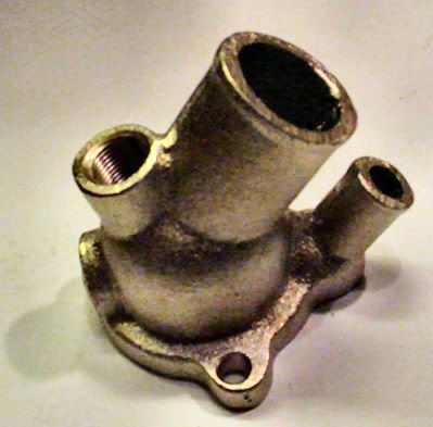 Nickel plated thermostat housing matches aluminum intakes (AM V8 )