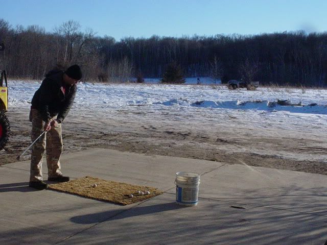 Out there in the distance is a postal jeep...the contest was to nail it with a golfball. Some pretty good golfers so it went to extreme elimination rounds.