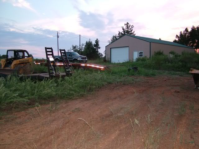 cj5 buggy first off... our new toy... :mrgreen: tools of the trade... shop will be viewed from the front... approx 200' X 200' lot cleared except for hard trees... Cat checking it out... scrapping the top soil to get to the hard stuff for the pad... ready for a bonfire... soaking down the hard stuff then start packing down for the pad... wrinkles enjoying a day out... so when it's ready ya'll gonna have to show up and we'll have a shop party... :razz: