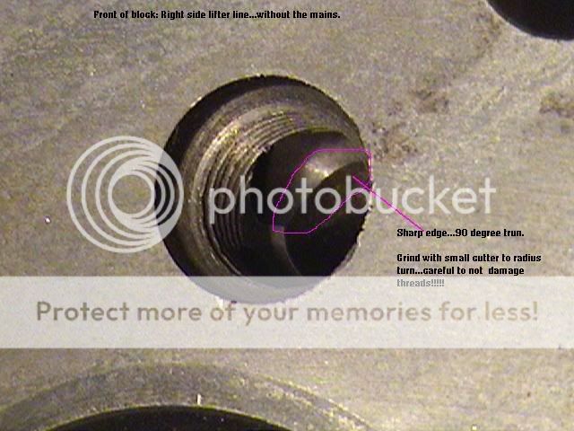 At the Y lies 3 90 degree turns. (1 over the Y to the other lifters and 2 more turns to go down the block to oil the mains and cam bearings + the lifters the other to oil the lifters side only).