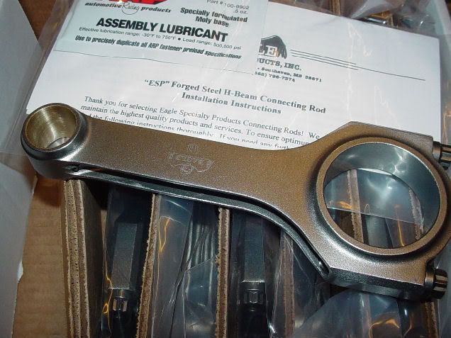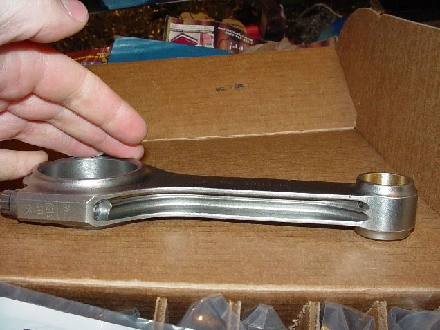 We are disassembling them this evening getting ready for Cryogenic heat treating at the same time the crankshafts will go out which will be very soon. After Cryo these bad boys are getting .022" ground off one side so their will be a .028" of offset left on one side of the rod. After they are ground and cleaned up they will get new bushings and a final honing for the wrist pin. The CRS6000HJ rods represent the latest in forged technology and with the stress relieving of cryogenic treatment we will be even more confident that these rods will live under big HP and hi torque numbers.