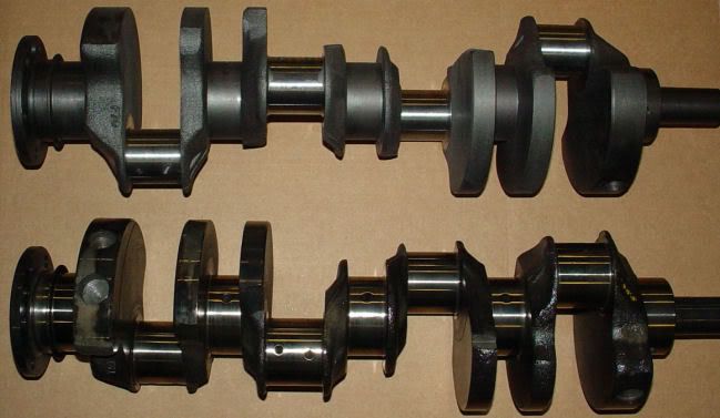 Here is a roughed stroker crank next to a finished nitrided stock stroke