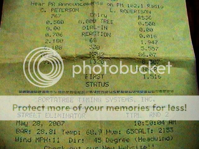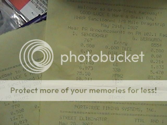 Well, I finally got the Huncho to the drag strip. Its a small 1/8 mile track. I haven't raced at a track for at least 15 years...so don't laugh to hard at the reaction times. :oops: