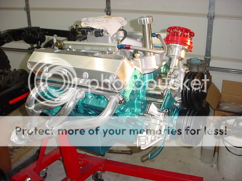 The hole furthest to the left in the "window bracket" gets either a 7/16-14 x 6 1/2" long bolt or a 3/8-16 x 6 1/2" long bolt, depending on what your head takes. Be careful, a 3/8 screws right into the 7/16 hole, but just won't tighten. Also, make sure the 7/16 fits thru all the brackets and alternator. We had to drill ours out. They made 2 versions of the alternator mount, a 3/8, and a 7/16. The bolt goes thru a lock washer, thru the "window bracket", thru the alternator, thru a short brace the other end of which bolts to the head (or water pump, or block, don't remember) thru a 3 1/2" long spacer, thru a 6 1/4" long brace, then finally into the head.