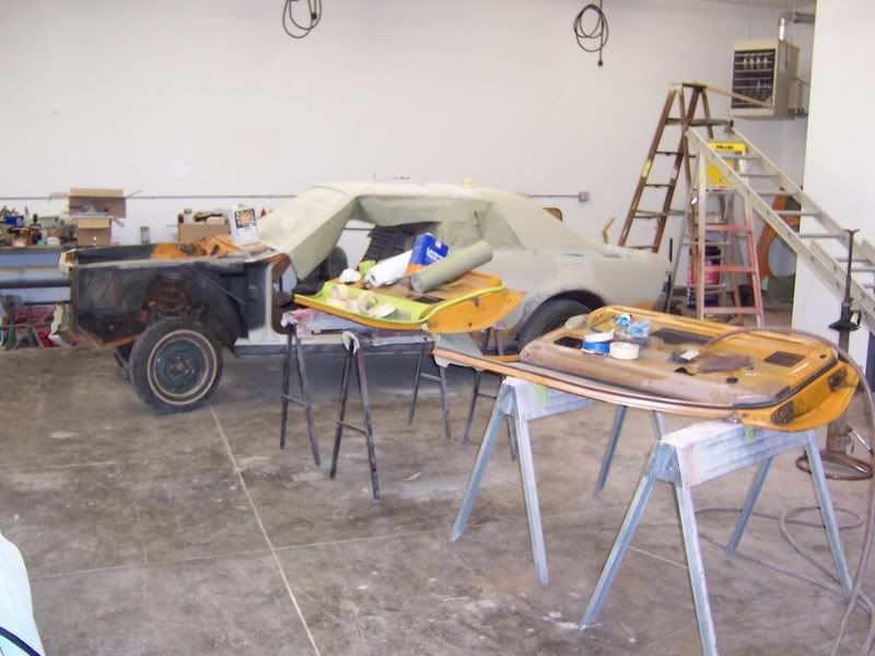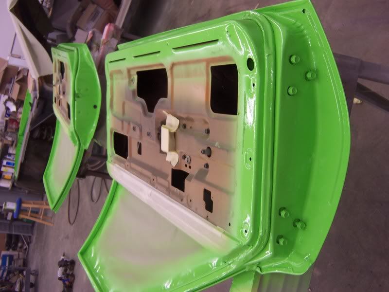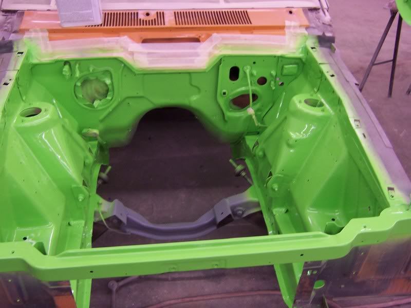 jeepsr4ever This car started as a pumpkin orange car :!: Here is Xracer390 hard at work making the paint happen. I decided to go big bad green (Thats the actual AMC color name) :idea: his car is to get a stroked 450CI AMC and a 727. We have a nice little ford 9" for the rear :razz: