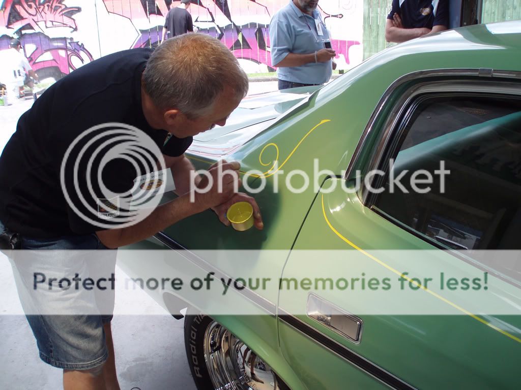 Goose Ya know , seeing the guy doing the striping by hand.. Have you ever noticed how those guys do that stuff freehand?? crap I cna't draw a straight line 4 inches long and these guys do the whole side of a car all hunched over!!