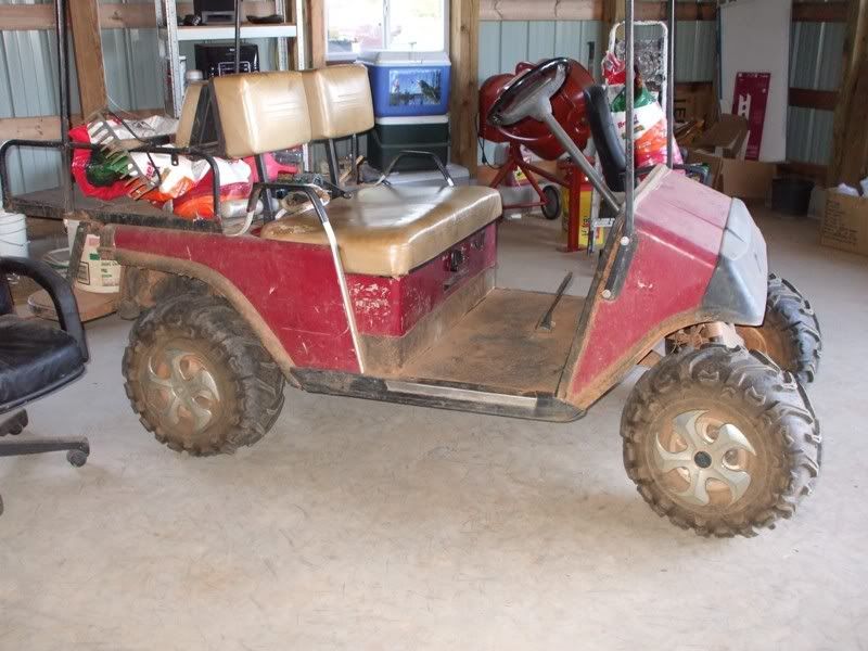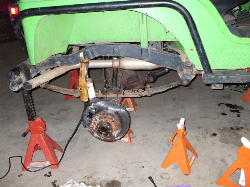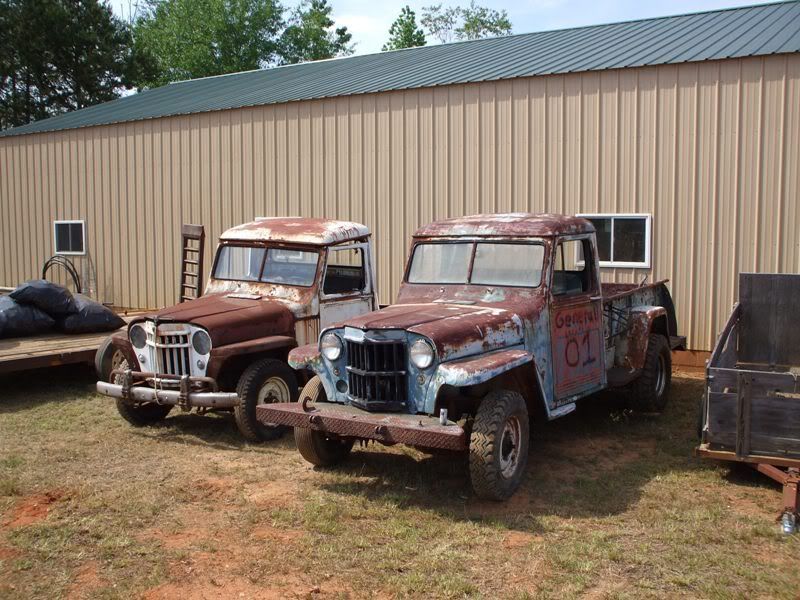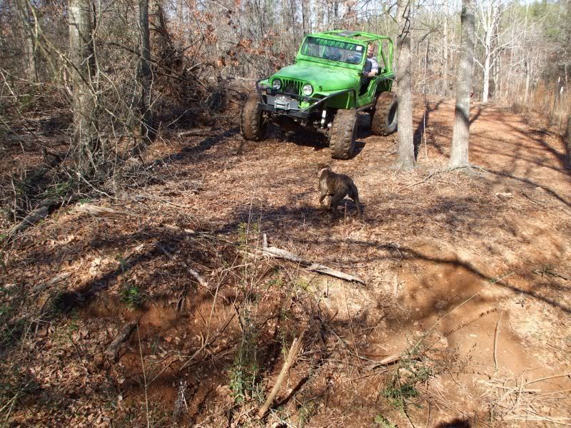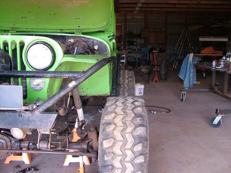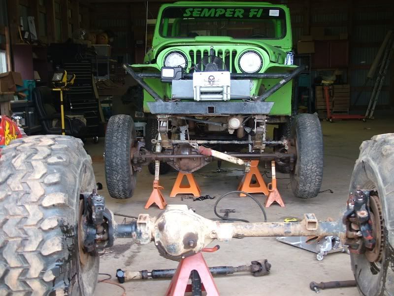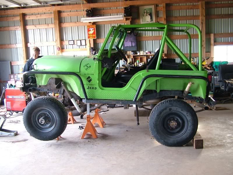 cj5 buggy Soooo MC & Mud... ya'll ready for April? :razz: i know ya'll like Pics... before swap... 383 stroker, th350, D300... 14 bolt 4.10's detroit, Front was a Scout D44 with ford 8-lug outers... held up okay, until i got up here in GA and started with the rock crawling, and lack of grease... dana 44 started going pop .. so time for 60/14 bolt combo... the shop... axels... 60/14 out of a CUCV 4.56's and detroit in the rear. out with the old... in with the new... can't for get about the hounds.... then starting on the front, then where the track bar was welded to the frame, rust = time to repair... the fronts is in at least... WFO highsteer you can see the frame repair in this pic... yep i had to get my own heat... man is she Fat clears the shock... rear disks... they're just thier for mockup... i still need to tear them down and paint... :mrgreen: our other vehicles... the wifes 93 YJ... the pick'em up trucks... 55 and 57. ones is going to be her flatbed truck for tooling around here, the other will have rockwells and who knows what... our golfcart... the 49 flatty (my personal favorite) never finished right? but she's ready for a trail ride... definatley need a front locker, and time to get the propane on... Dutches... Jason's pooch... and mr. wrinkles... the welding table that we built... finishing the shocks... me my buddy jason mounts made room testing painted the axles... finished couple vids... ordered a lockrite for the front and going to bleed the brakes a couple more times and should be good to go. hopefully will get the propane running soon also. :mrgreen: