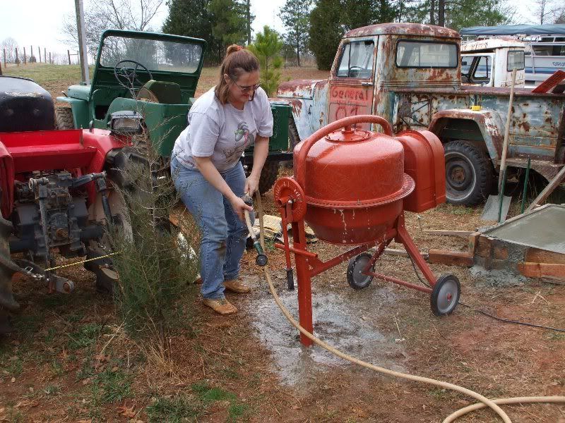 cj5 buggy some pics from today... out with the old... in with the new... see i do manual labor... close up of the rear truss.. since we had time for a break, the wife wanted us to help get ready for a new air compressor... the one we have won't even tighten or loosen the bolts on the diff cover. which means this has been all manual labor build... the wife cut herself building the form... anyone wanna guess what the dogs found in the back yard? :mrgreen: