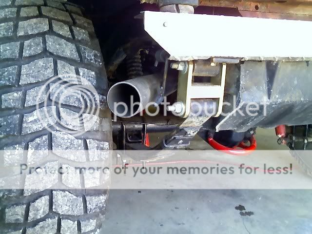 The muffler is a single inlet/dual outlet glass pack flipped around backwards. It is a little too long and kept us from humping the pipe up over the rear axle to give it clearance like we wanted to. Next time will look for a shorter muffler.
