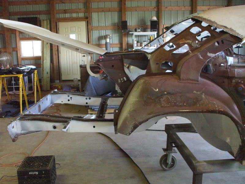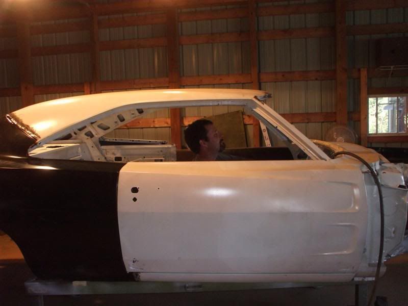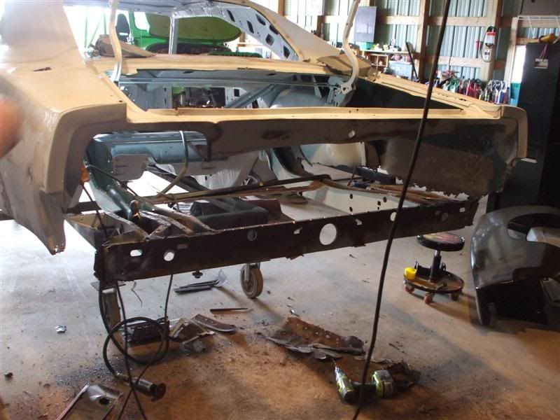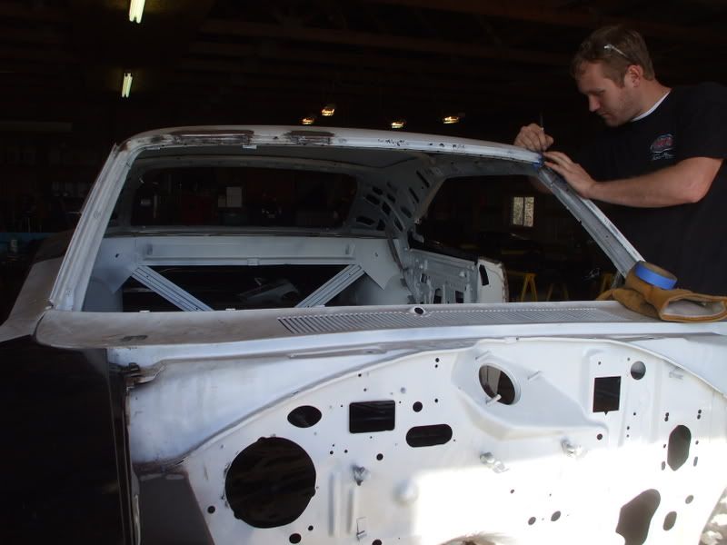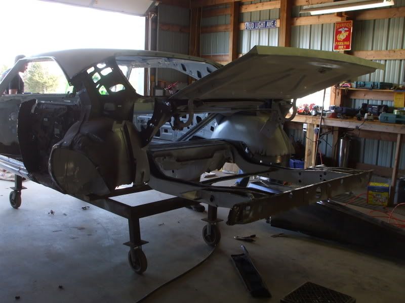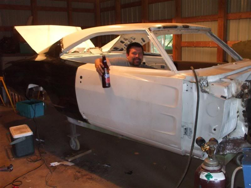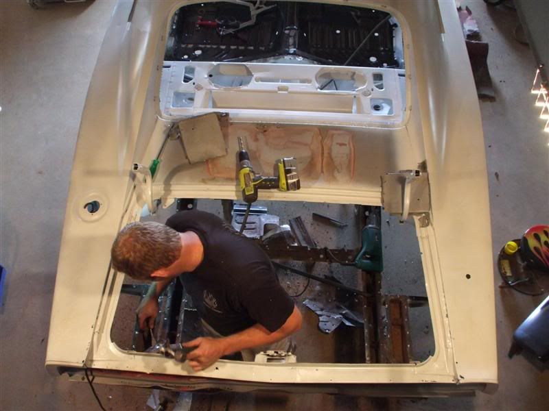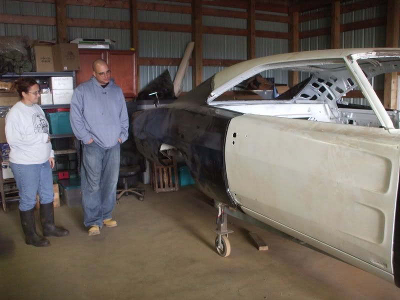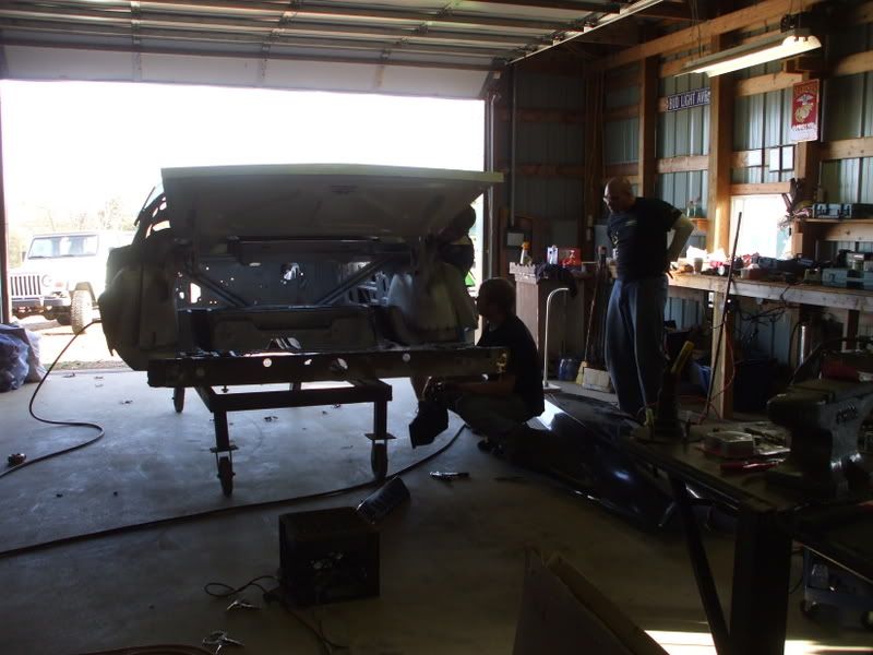 the blaster guy "Jim" came out to meet "kid" Chris and also to take a gander at the car. he proposed to bring the car back to his shop and get the car blasted and sealed one more time. so before we weld in all the metal, we are going to bring it back and have him seal it up. so we got to dismantel the car (one more time) and he was amazed what a difference it was back to the shell.