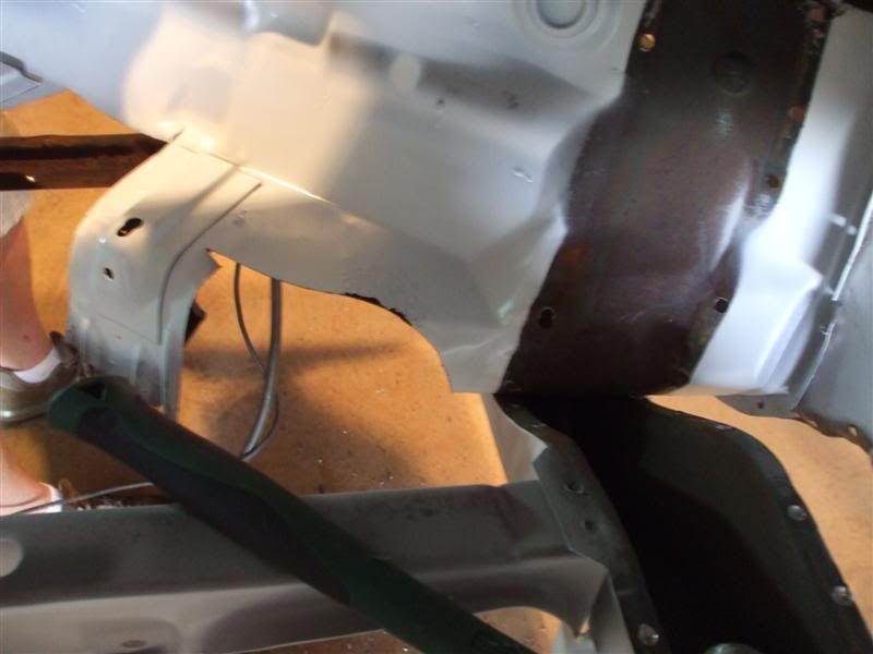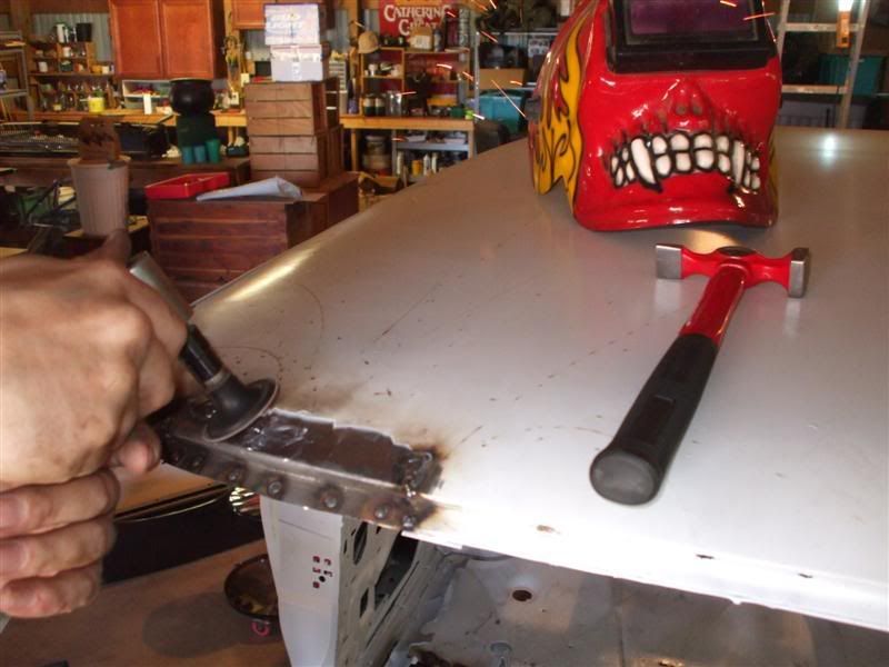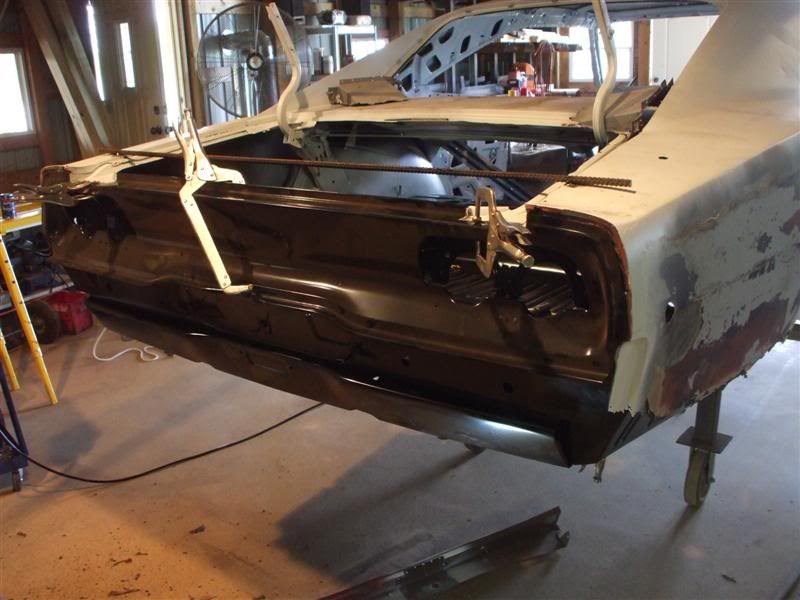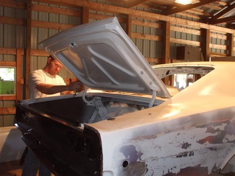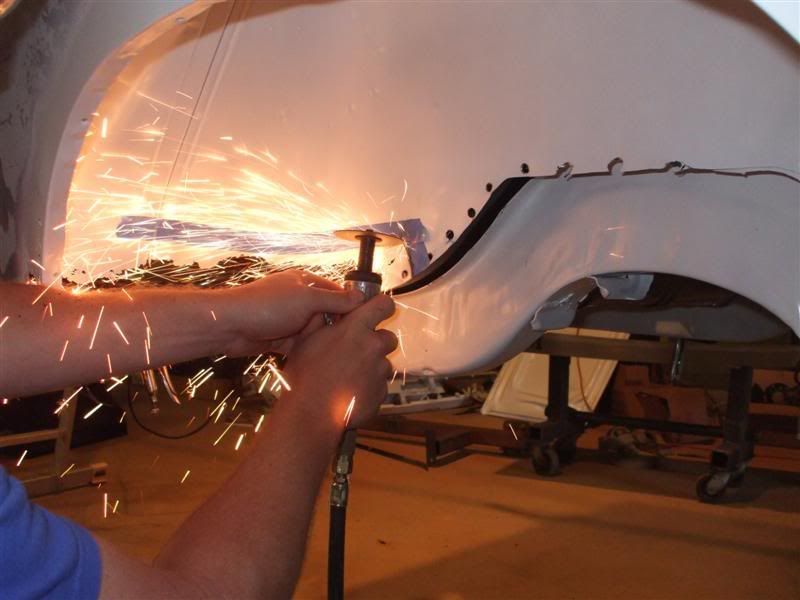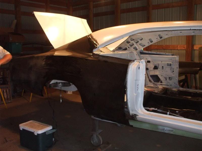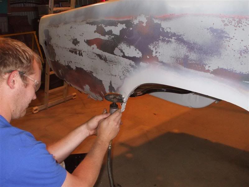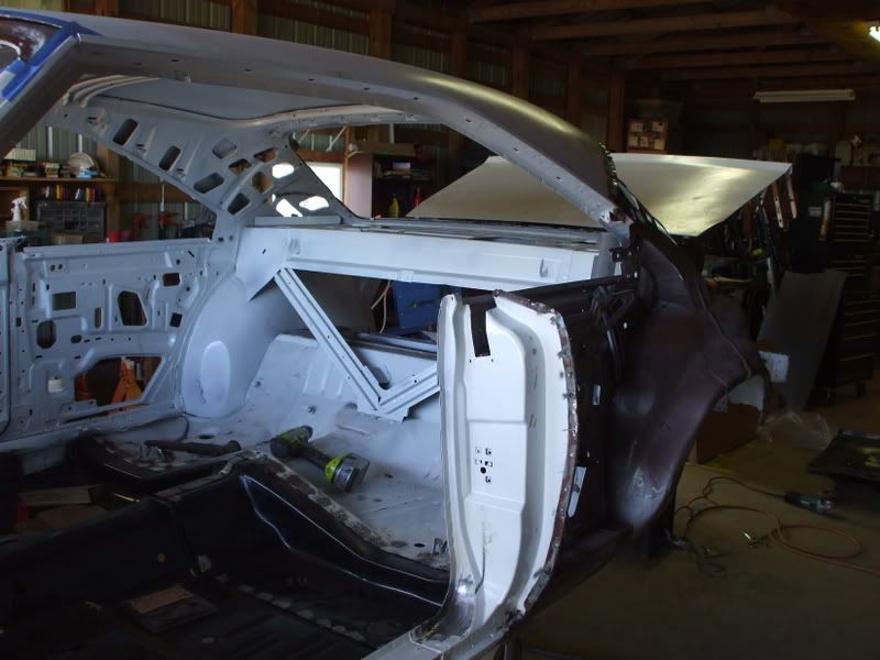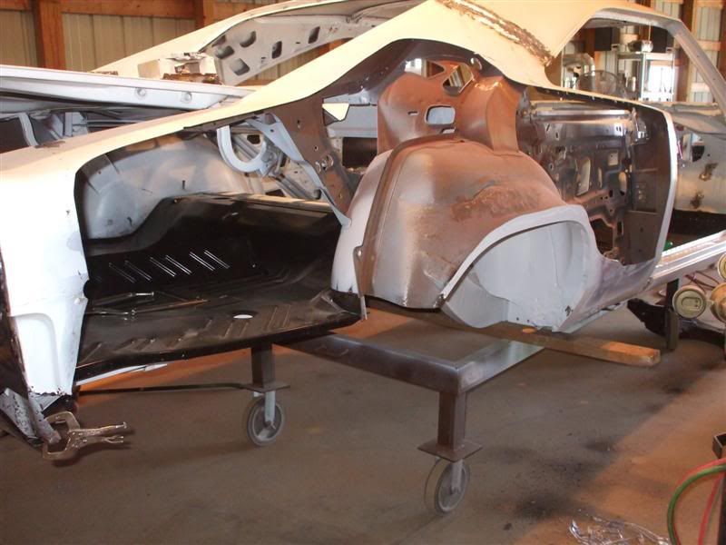 the blaster guy "Jim" came out to meet "kid" Chris and also to take a gander at the car. he proposed to bring the car back to his shop and get the car blasted and sealed one more time. so before we weld in all the metal, we are going to bring it back and have him seal it up. so we got to dismantel the car (one more time) and he was amazed what a difference it was back to the shell.