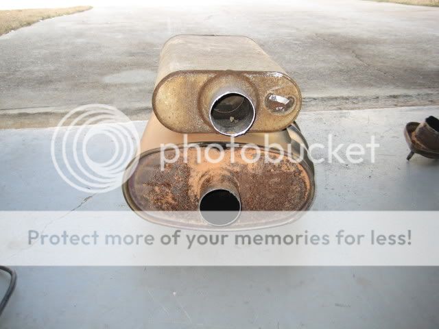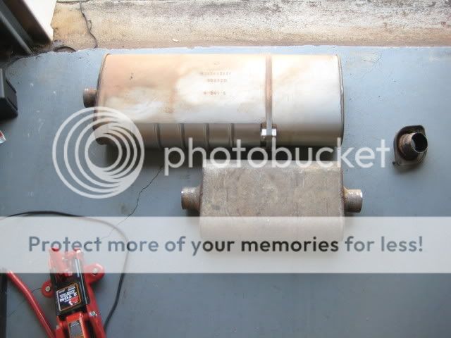 So I decided to take the big plunge and cut out the old muffler. Check out how huge this pig is compared to a flowmaster: