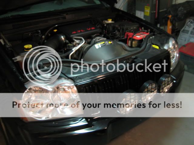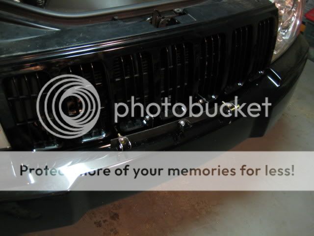 I picked up a pair of tiny driving lights that were only 12 bucks, but looked pretty cool, so I made some brackets and mounted them. I also took off my valence at the same time (had I known it was that easy, I would have done it a long time ago!).