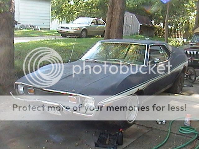 Here's the deal...I have a '73 Javelin with no title. The floor is gone, well except for 4 big holes. #-o Engine is a 304 auto with consol. No a/c but has cruise. Don't know if it's factory or not. Would need bottom of rear quarters. Don't have a key but will check if motor runs this weekend...or if it starts. Body is solid other than the floor as it sat for about 14 years in the grass. :smile: