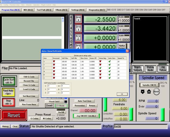 (If you want a faster Z axis increase the % from 20% to 40% or higher, this increases the speed of the Z axis as it feeds to the top of the workpiece)