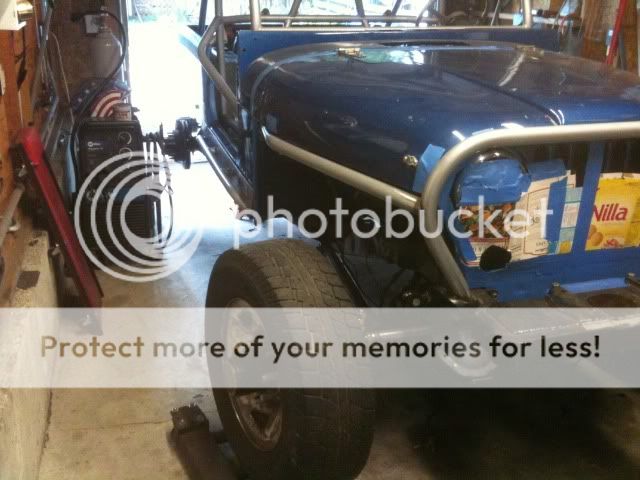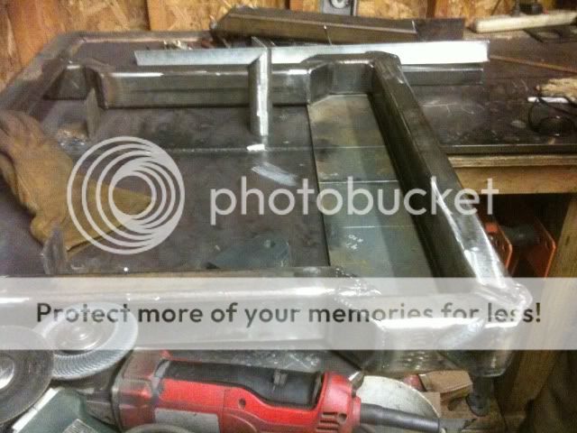 Things are moving along pretty well. The new section of the frame is coming along and should be on today. We wanted a little more uptravel and used 2x3 box, rather than the 2x4 that would be closest to factory. Rather than a straight square box, this one is made to accommodate the coilovers a bit better with the "step" to the inside. This also will integrate the winch plate. Andy made a jig to work on the workbench to make sure this thing is square (and it is). Shown upside down.
