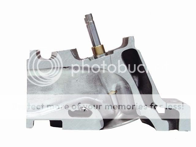 The exhaust side has the most "sweeping" changes. Note the Indy 401-SR head's smooth and consistent cross section. As-delivered volume on the enlarged port is 105 cc's, yet it still exits in the stock location: