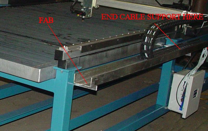 Cable carrier is the best way to hold your plasma lead and your motor leads. Our 5x10 kits will come with cable carrier however some fabrication will have to be done. This fabrication will be the support for the cable carrier.