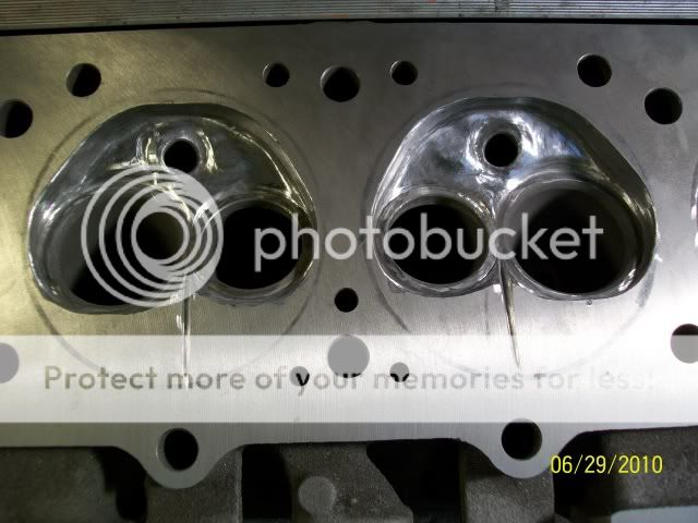 Also shown is the exhaust and intake ports after I ported them out. They are quite a bit bigger wouldn't you say? I cut them to match the gaskets so they now match. I also went inside and cut some smooth turning radiuses. Cut out the valve pockets and polished them for full flow. I just wish I had a flow bench to tell if I made any progress. But there must have been some improvement for all the work. It kept me busy while I was waiting for my Bulltear parts--lots of them!