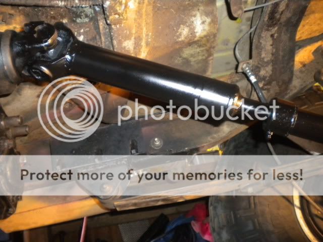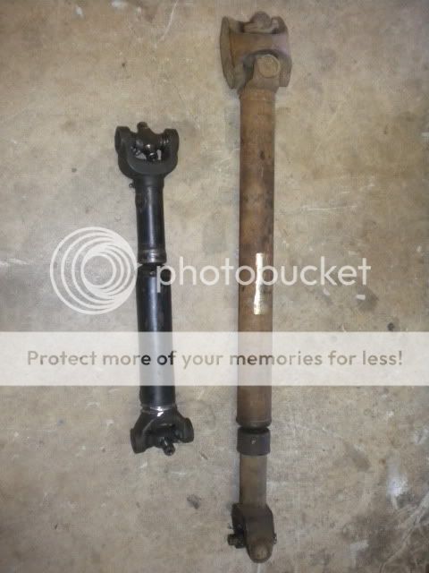 After researching a little more, I found a good article, http://www.4x4wire.com/jeep/tech/shaft/diydriveshaft/ I measured at full droop and sitting level. I came up with about 1 3/4" difference in lentgh. I decided to center the slip yoke and make my cut. The new drive shaft was a bit thicker so I ground the yoke to fit. I''m picking up a dial indicator tonight and will mock everything up tonight. I don't feel like I have a safety issue as the yoke slides into the new tube like from the factory and is welded together.