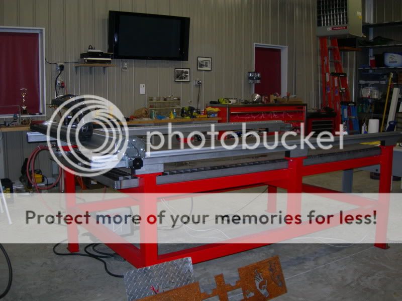 Here ya go. The heat was off in the garage and I got one picture before the batteries went dead in the Nikon. Once I get some projects I'll post some more.... I'm learning more and more everyday. You can see some cuts in the rusty metal on the floor...
