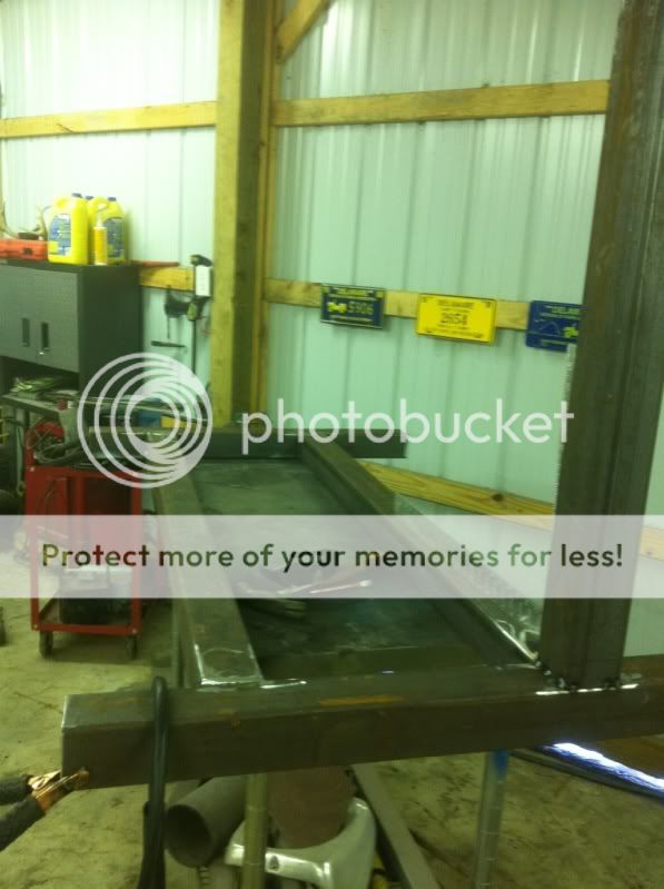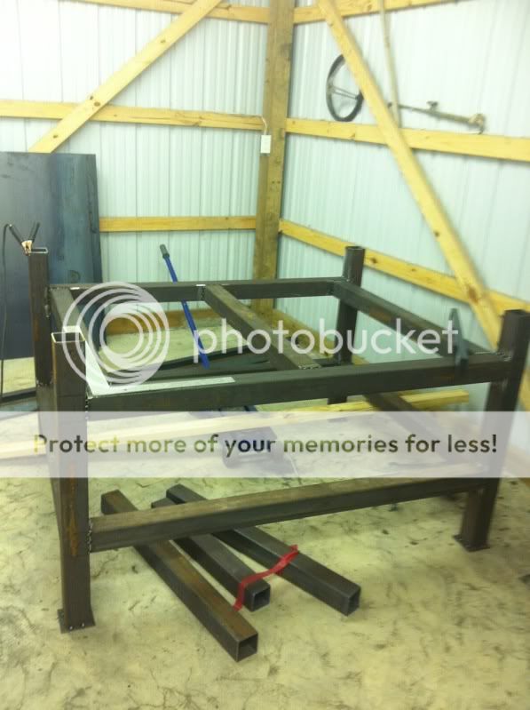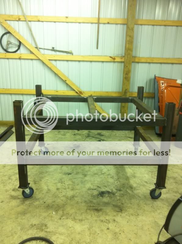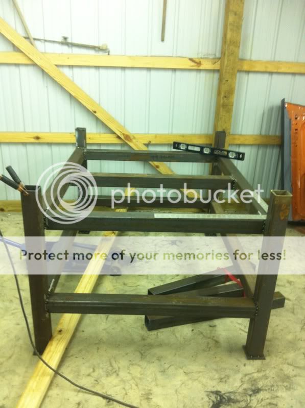 Well since its raining here and kinda cool in the shop i got some more work done this morning. I am gonna go ahead and get my leveling legs built because where the table is gonna sit the concrete is not level go figure. LOL I got the table all welded up and got the castors on, that was more welds than it looked like.