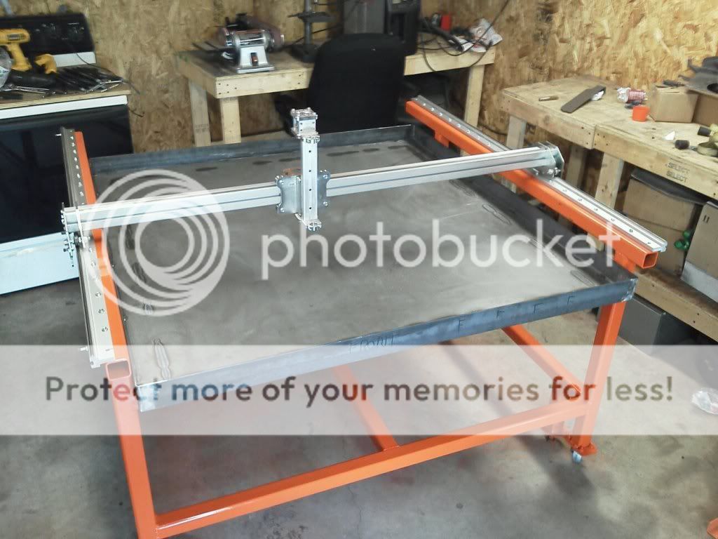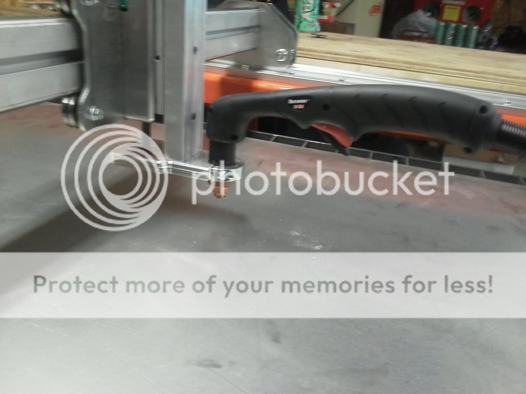 I have an idea to make clamps that you can undo and move around and clamp to your angle iron frames, because I noticed the material moves if you wiggle it, dunno if the air pressure from the torch will move it, or the thermal expansion moving the slats will have an effect but all I know is smaller pieces and aluminum Id be worrier. So moveable adjustable clamps with different sized fingers, think of those clamps they use to hold dies down or material to be milled but smaller. And also if you have 3 you can set to on 1 axis and will be adjustable to where you can square up material on, and then 1 on the other axis as a Stop so if you cut multiple sheets once I make one Ill tweak it, possibly be the first thing I can sell muhahahaha wicked ill give you a buddy deal 1 for 99 dollars or 3 for 100 ok = )