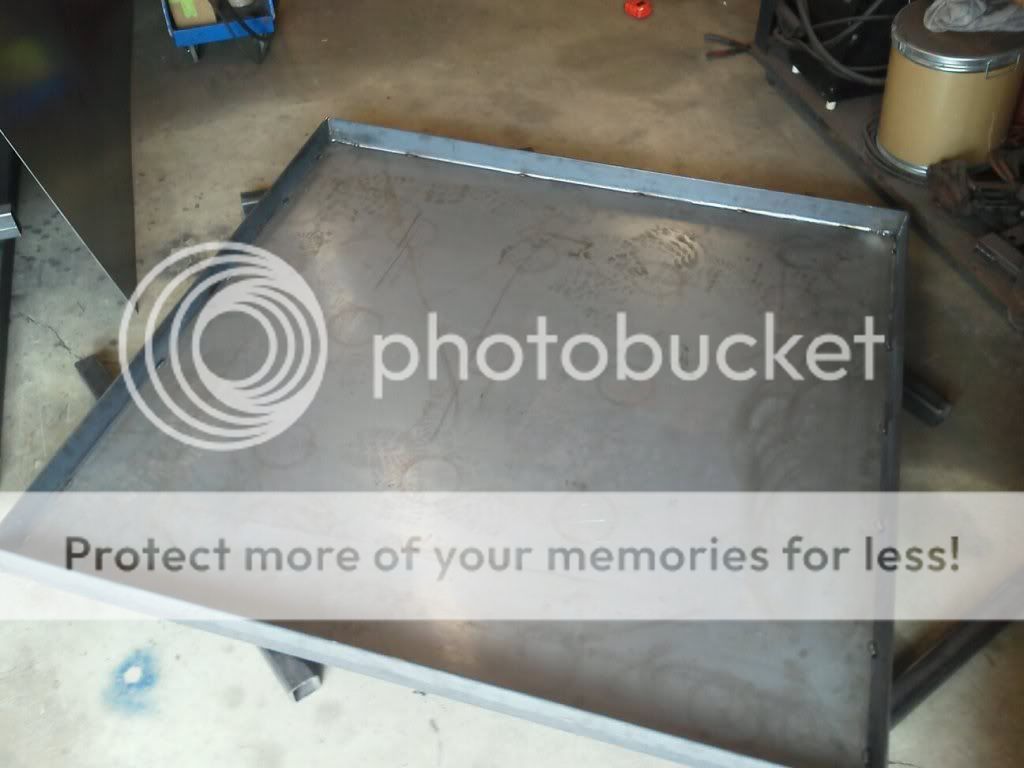 I just tacked the slat holders on the ends 1 in the middle and then once inbtween them, I screwed up and now I cant seal the ends where it butts against my angle = P so Im gonna have to take a decent size cut off wheel and cut down so I can seam seal it because I didnt fully weld the bottom, no point really since I dont plan on water getting between the sheet and the angle.