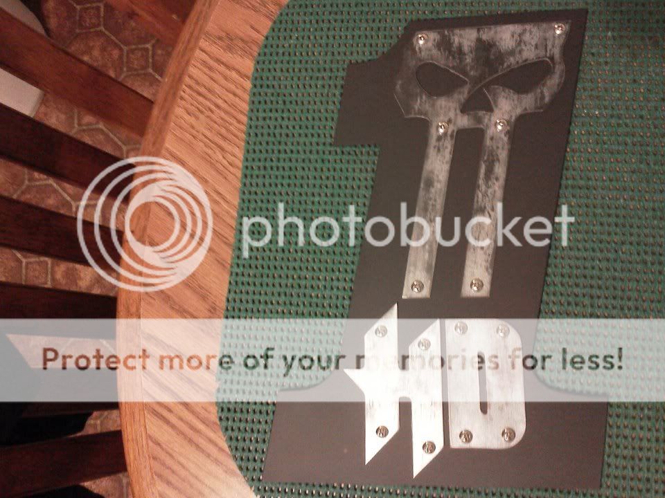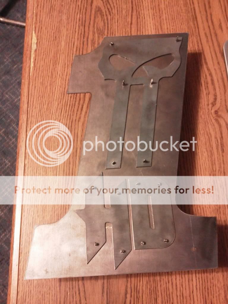 Heres Some stuff I cut yesterday wanted to make a sign to go with all my cars signs ive hung up, cut out a Hotwheels logo and made this. Its 12" high gonna powdercoat the 1 Black or Flat Black and polish chrome / orange / maybe engine turn the SKull and Letters. Gonna engine turn some test pcs today when I get some hardware.