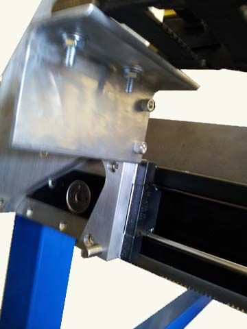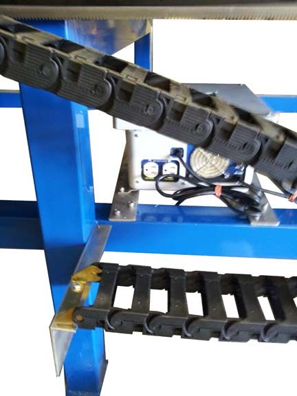 Here we are attaching the other side of the cable carrier to the side of the center support on the table. Not how the box is mounted using angle aluminum with 3" of one side of the angle cut off and the other side bolted to the frame (mount control box under table or anywhere that dripping water will not destroy the box.