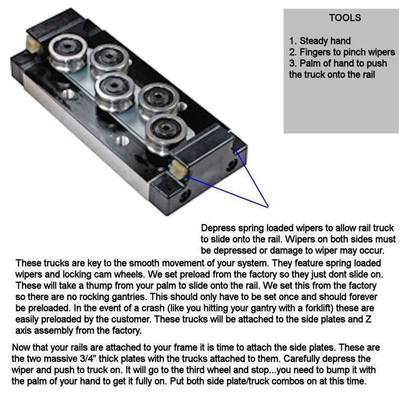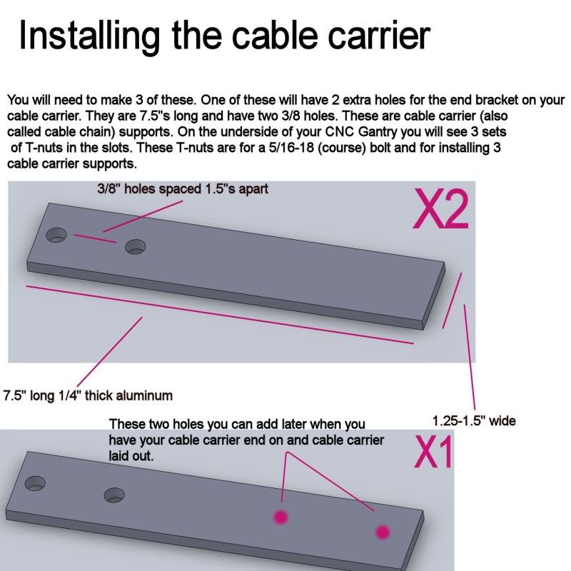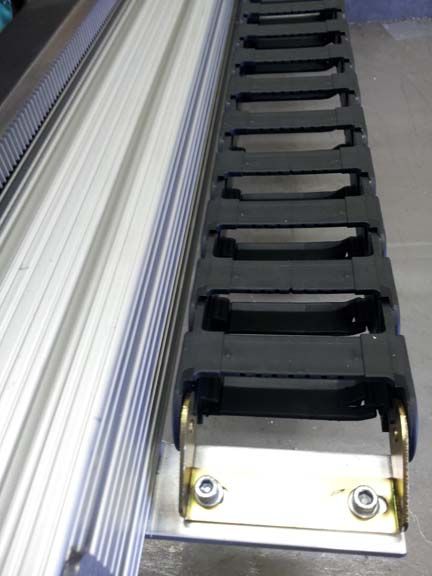 Here is how we attach cable carrier. This is done by cutting a piece of aluminum angle and drilling and tapping the side of the thick 3/4" thick sideplate for the cable carrier ends.