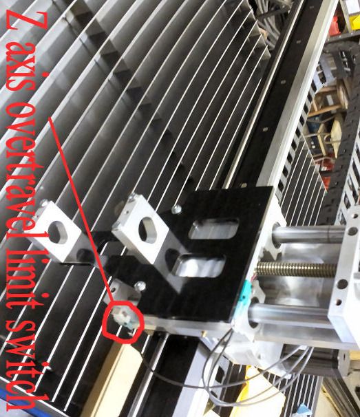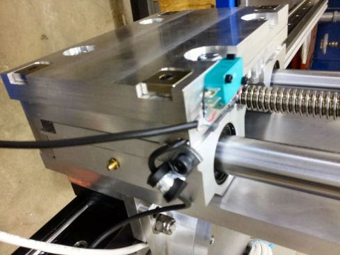 To get your lower Z limit wired up right you need to wire #1 and #2 on the Z switch and bolt it to the side of the lower Z axis plate as follows. Make sure that when the Z axis travel down it contacts the limit switch before bottoming out on the lower plate.