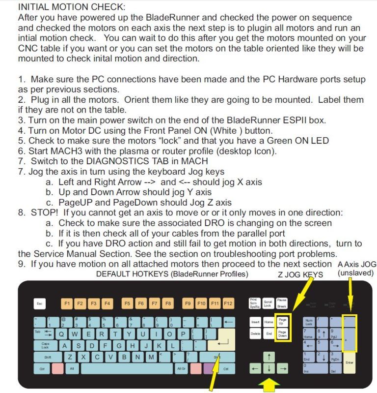 These machines are setup so you cannot crash them. They are also setup from the factory so you can use your keyboard to move them. If you do not like the direction they are moving where you orient your PC in relation to your table you can change the direction by going to Config/Hotkeys and using that menus to change direction of your jogging motion. Here is a copy and past from the manual for jogging.