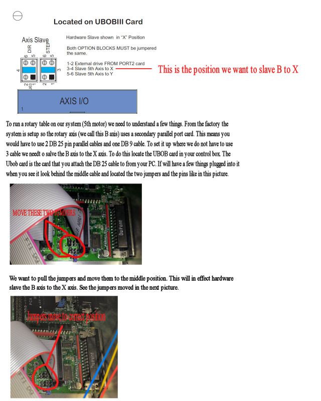 When you install the bladerunner software plug-in from the Support disk you will see that it iwll pop up two different shortcuts on yoru desktop. One will be "Blade runner AIO DTHC" or similar and one will be "Bladerunner rotary". When your using a rotary table an you have hardware slaved the A axis you no longer need to software slave it for use with the STD DTHC Bladerunner profile. You will need to put in motor tuning, accel and velocity numbers for your machine on both profiles to use them correctly. You will also need to set your Z home low active and your limit switches for your Mag-Lok in each profile. Once set they will be there for use at any time.
