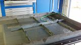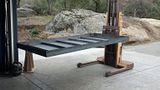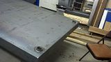 Apocalypse Fabrication Ok, sorry for the lack of progress and updates. Life has been happening and we just havent had a chance to work on this. Anyways, I got a chance to put a couple more hours into it yesterday. I made some extensions for the forks on my forklift. They are light duty, but I didnt want to lug around massive extensions when the capacity of the forklift is only 2500# and I doubt that I will be working with any full sheets of material over 1/4". I built them using 1.75" 1/8" wall HREW tubing and 2x5x.25 rectangular tubing pieces. Pretty simple. I bent them with my tubing bender so they wouldnt have any sharp edges to hit the sheets. I hope the round tubing profile will also help to minimize scratching when loading sheets. I removed the water pan from the table, flipped it, cut holes for the pipe flanges with the circle attachment on my hypertherm, and welded them in with the tig. I filled the pan with water and reinstalled the slats. It's been 16 hours now and no drips, so I must have done something right!