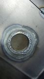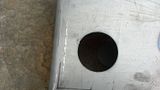 Apocalypse Fabrication After some further work with the table today: Still blinking We got the stored settings button to work when Katie installed the Smart Kut file from the disk. I downloaded a txt file from CandCNC.com that had a bunch of settings files for hyperterm machines. The preset voltage just needed the "enter" button hit to make it stay at 137. 4 & 5.... same I rethought this last night and remembered the arc being VERY visible while cutting, which seemed wrong... so this morning I decided to try cutting with the THC off. The result was a very nicely cut shape, with hardly any dross or taper at all. SO... I stopped the programs mid cut with the thc on (blinking) and off. With the THC on... I measured the torch height at .430" (almost 7/16"!!!!!!) and without the thc it was .065" (a lil more than 1/16"). That difference is where the taper and dross came from. I think Ive come to the conclusion that our THC is not working. Katie and I sent an email to the CandCNC email group to see if we can get some help. I may call Tom tomorrow if I dont hear from the list. .430 cut height: Taper of no THC Cut: No THC Cut Height: Condition of piece with no THC immediately after cutting (ignore the chinga in the inside, that was from repositioning the piece after stopping the cut)
