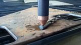 Apocalypse Fabrication Well, we got some vacation at the end of the year, so I wanted to work on getting the cnc table cutting. Good news, we got it cutting. Bad news, there are a few issues... as always. The THC Light is blinking green when activated from the Mach3 screen (does this mean it is working or should it be solid green?) Our "stored settings" button on the Mach3 screen does not bring any menu up for saved settings or even the current thc settings. We changed our preset voltage from 140 to 137, as per the hypertherm manual, on the second cut. However, as soon as it started cutting it reverted right back to 140 volts, ignoring our change. A general question... what amperage should I set the hypertherm unit to when cutting? I was using 45 amps, since I was using 45 amp consumables, but I have no idea if that was right. When will we receive those limit swiches? We are getting about 1/16" of taper on the edges of the cuts on .25 mild steel. That seems excessive to me... These pics are of the cuts... all cut to hypertherm's book specs for 45 amp shielded consumables on a hypertherm 65 with machine torch: more pictures at the links...
